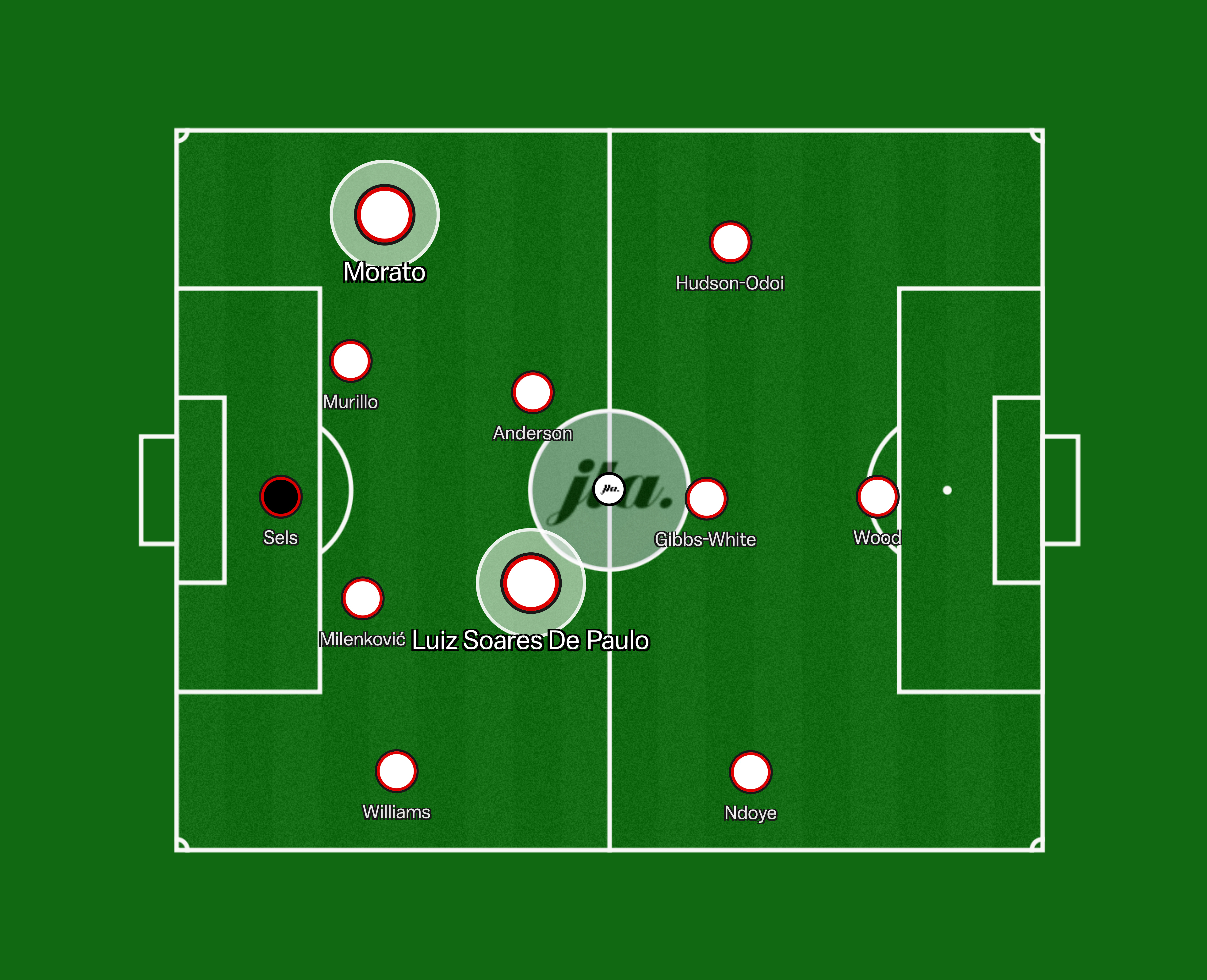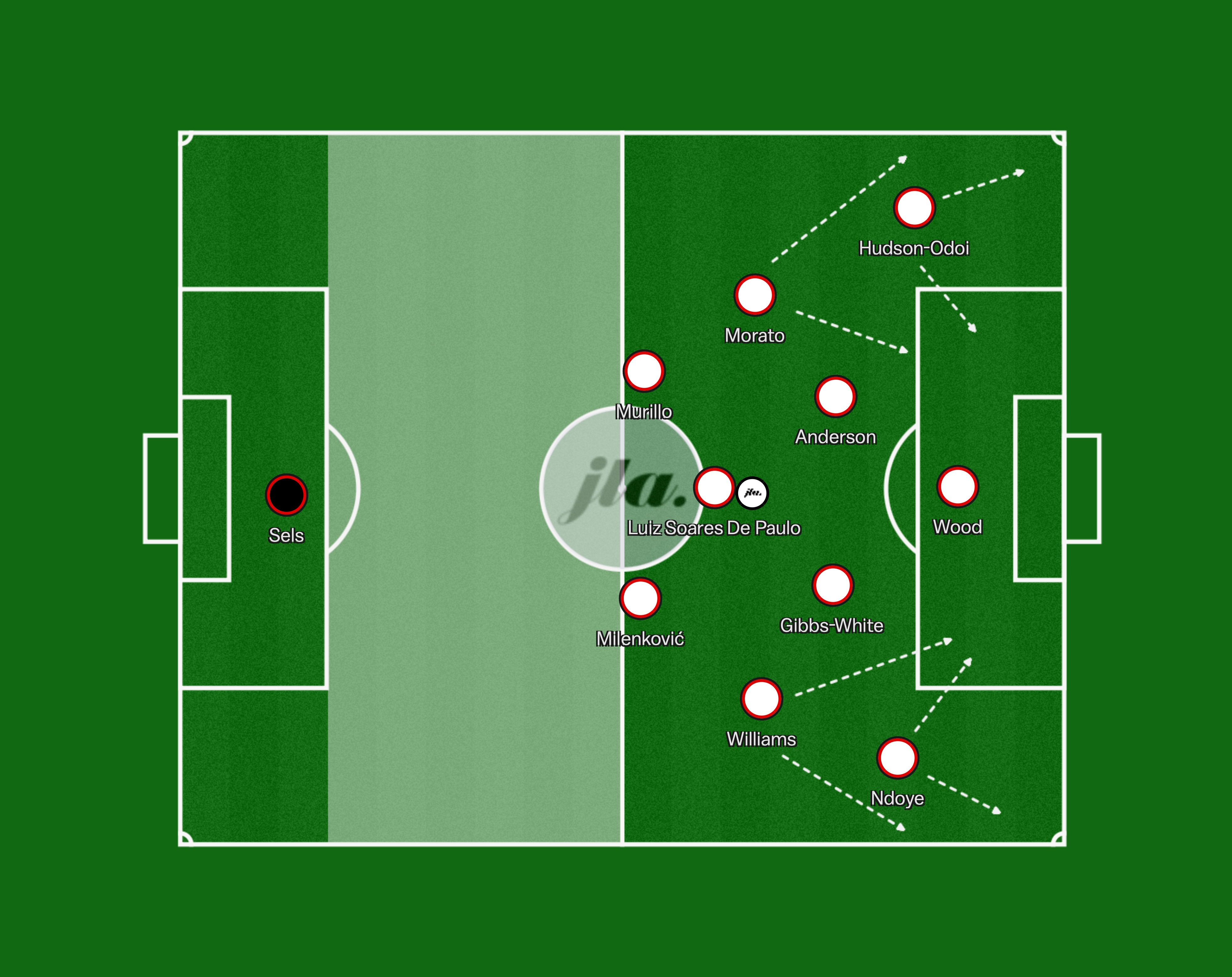 Both the full backs and the wingers will also be expected to make runs on the outside and the inside causing issues for the opponent’s defence, however, with Morato coming in as a makeshift left back, this could be a lot less intense.