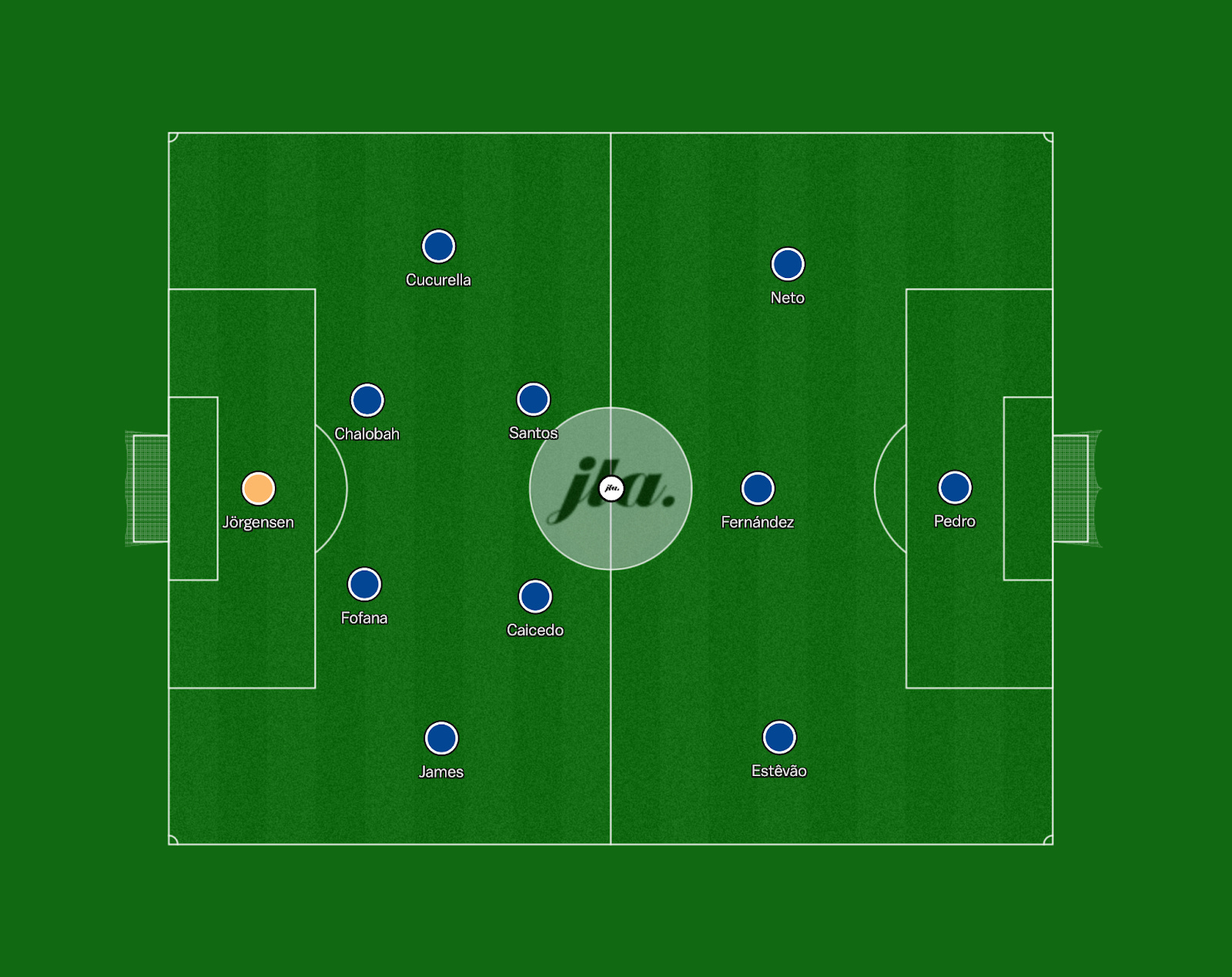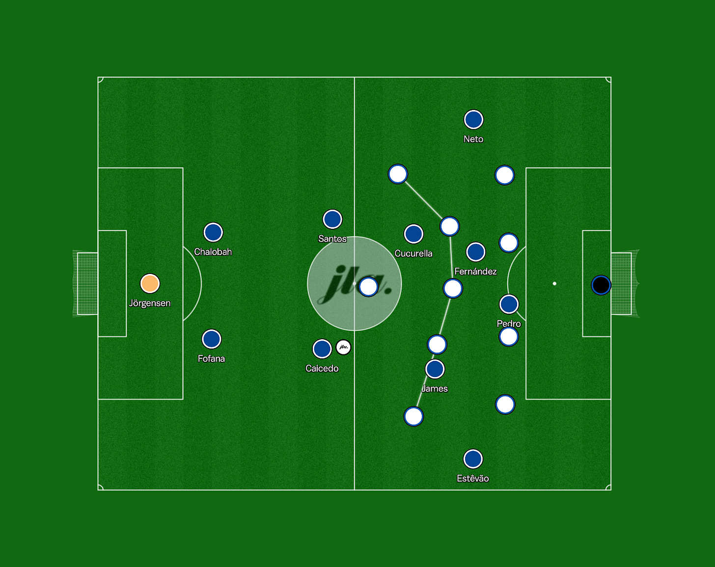 James and Marc Cucurella should be able to deliver higher quality crosses with the wingers back too, as the wingers allow more options for the fullbacks going forward, able to come inside to form a pentagon in midfield, more likely than the usual box we see due to Fernandez playing as the 10 rather than Palmer.