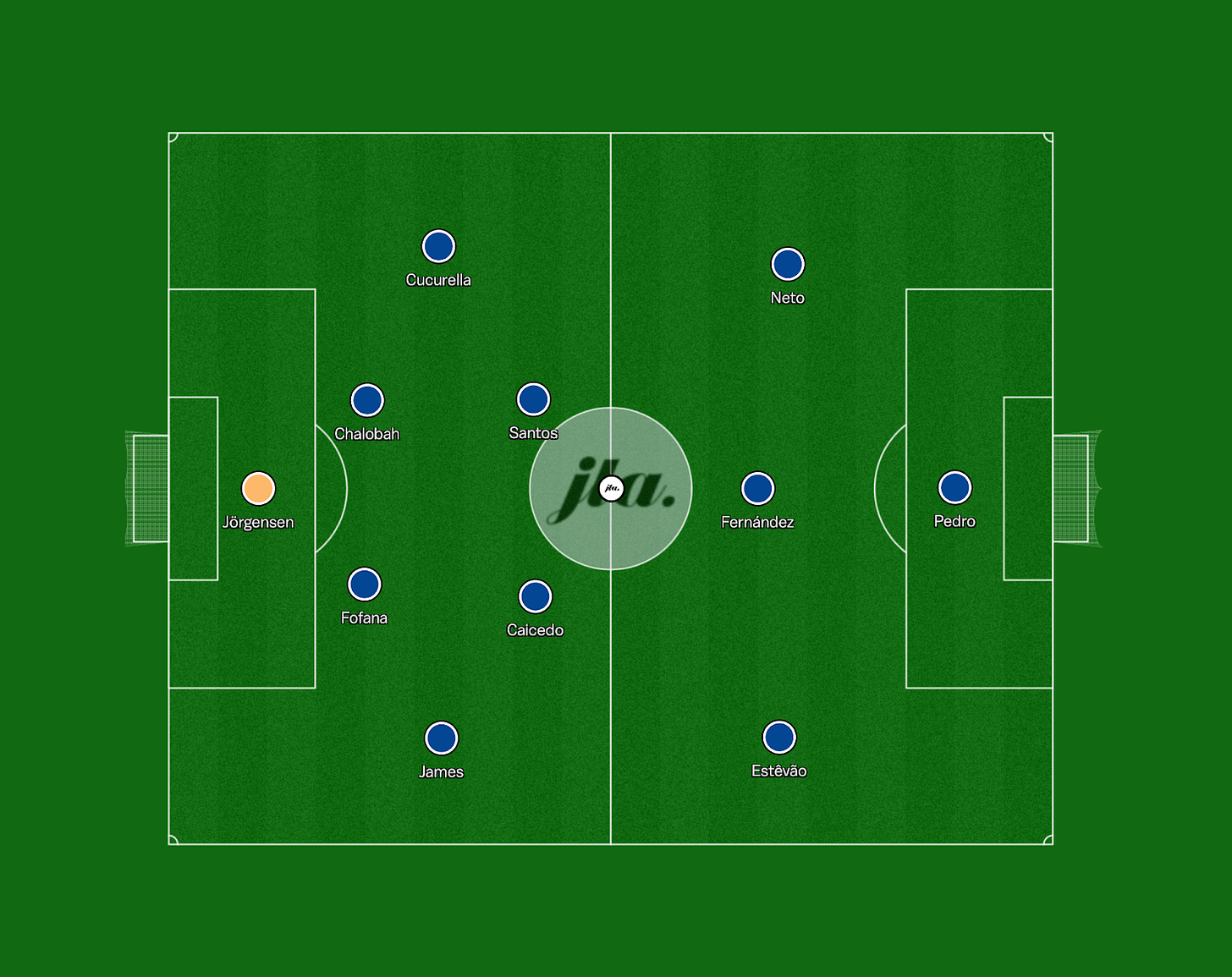 With Robert Sanchez suspended, Filip Jorgensen is set to start in goal for Chelsea, as well as Andrey Santos expected to replace Cole Palmer who is set to miss the game through injury, meaning that Enzo Fernandez is likely to start in a more advanced role.