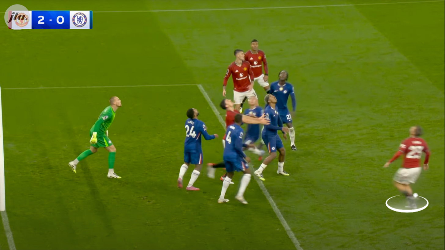 Defensively, Chelsea seemed almost passive when the ball came into the box, not doing enough to challenge the second ball, particularly for Casemiro’s goal, allowing Luke Shaw far too much space in the box as they waited for it to fall back down, and this is something which surely has been worked on in training leading up to this game.
