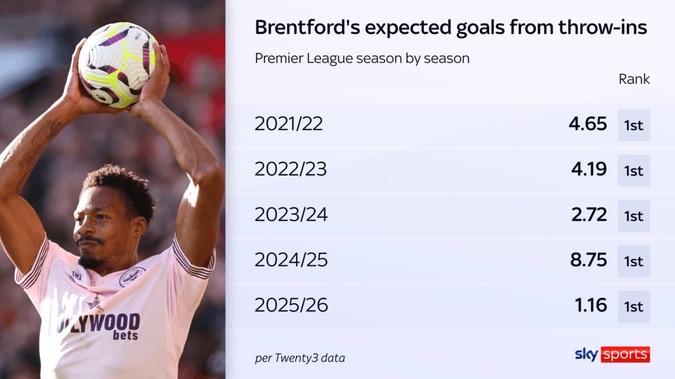 Graphic from Sky Sports - Long throws: How Brentford became the Premier League kings in this department amid goal spree