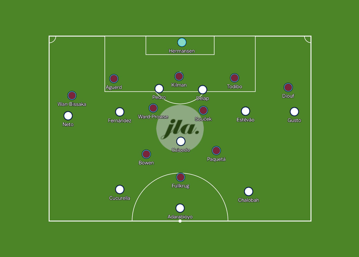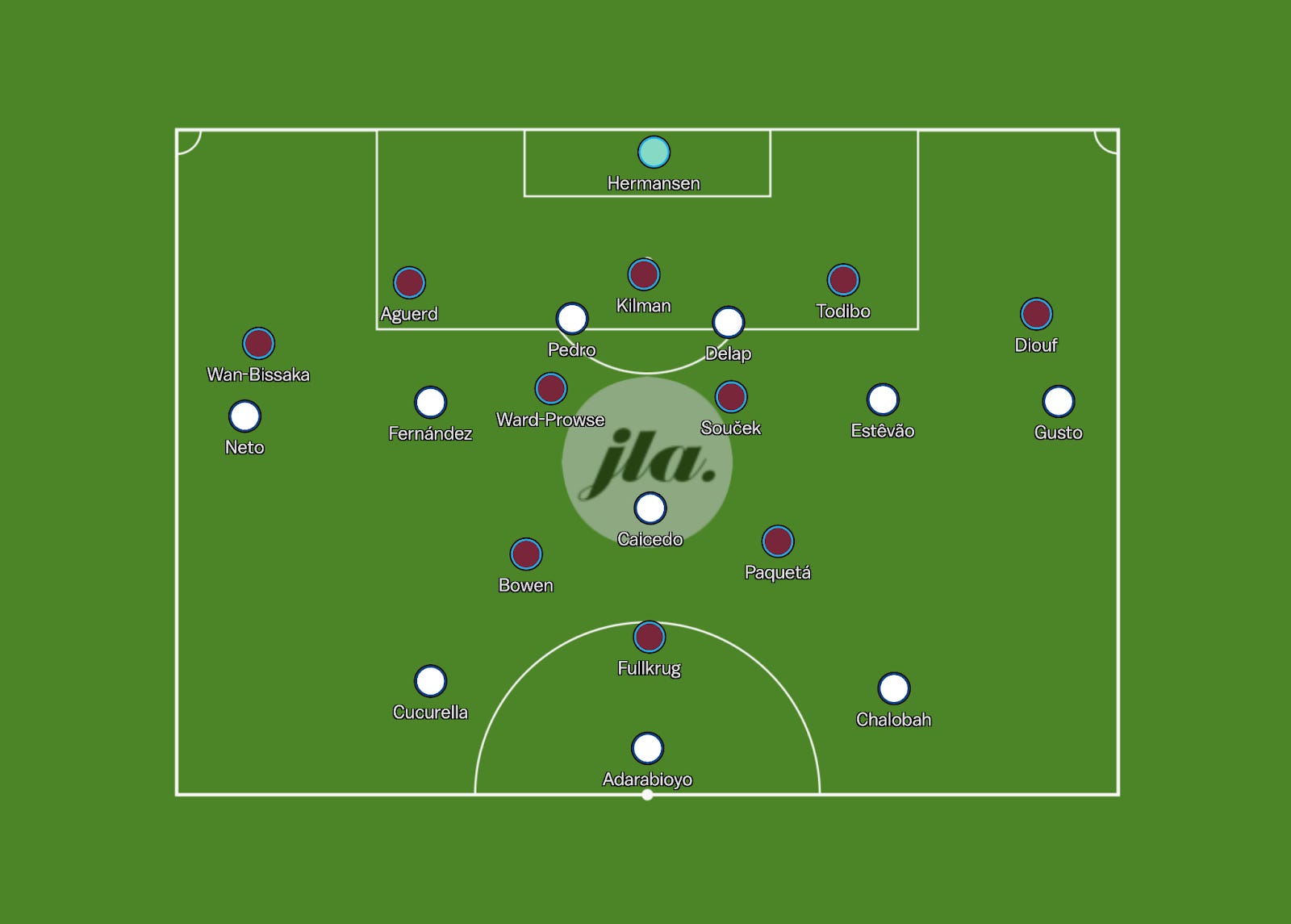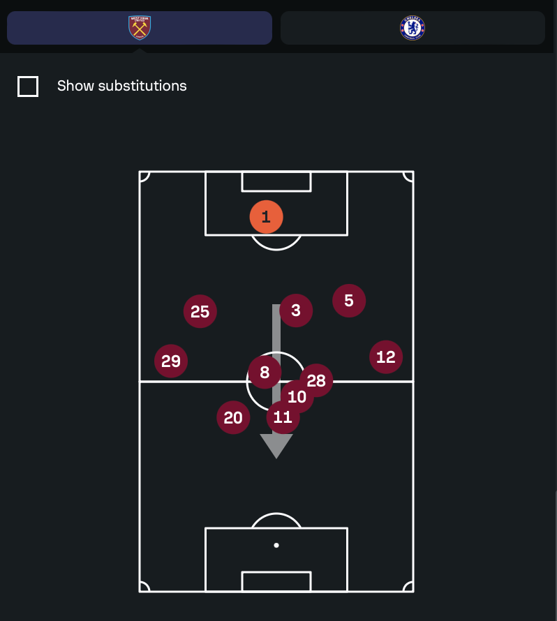 West Ham’s Average Positions vs. Chelsea