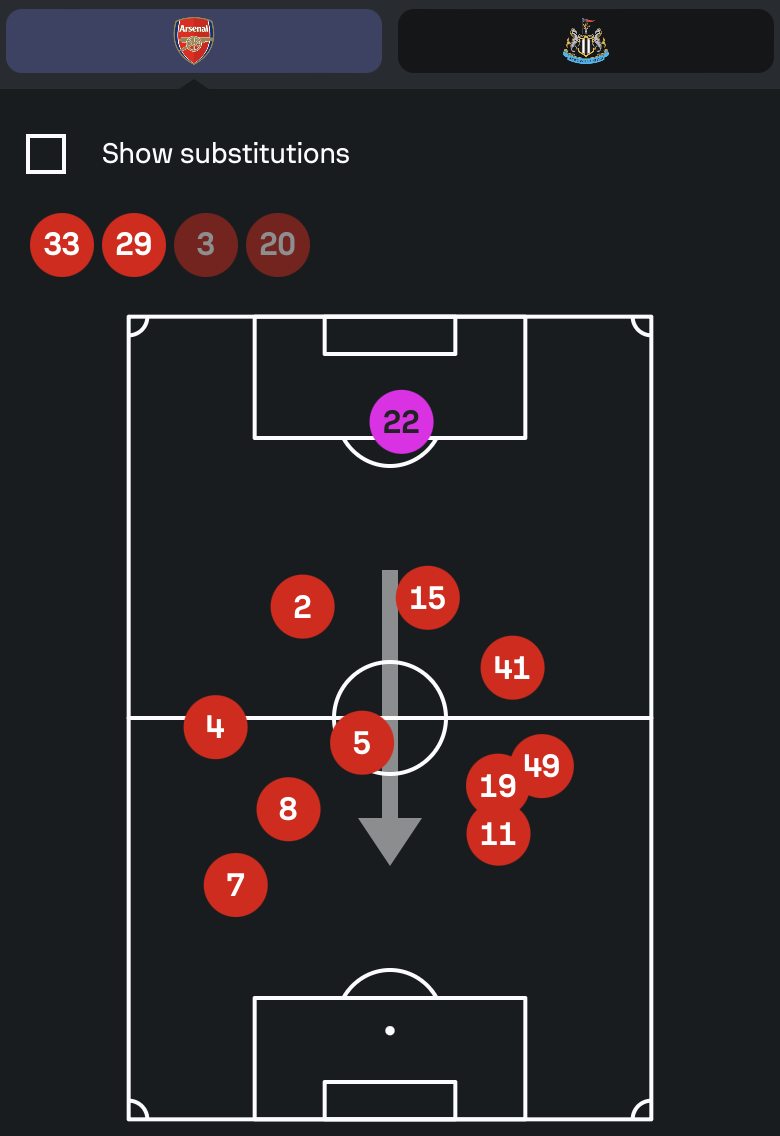 Take Arsenal’s penultimate game against Newcastle as an example: