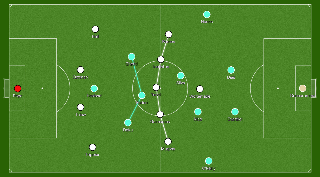 If Newcastle look to come into this game with a similar gameplan utilising their 4-5-1 midblock, I believe Manchester City will be able to pick them apart with their usage of central clusters, so it will be interesting to see if Howe has something different up his sleeve in order to deal with Guardiola’s new ideas.