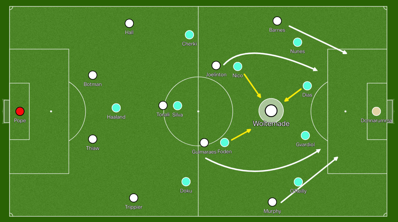 This should be a clear point of focus for Newcastle against City, looking to exploit those spaces with runs from midfield, especially given their athletic prowess in the middle of the park.