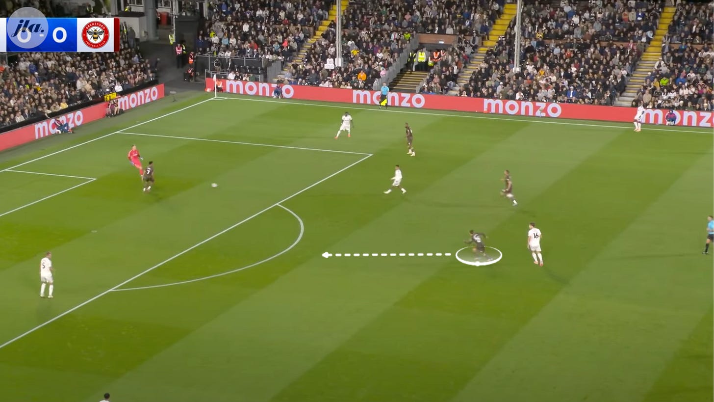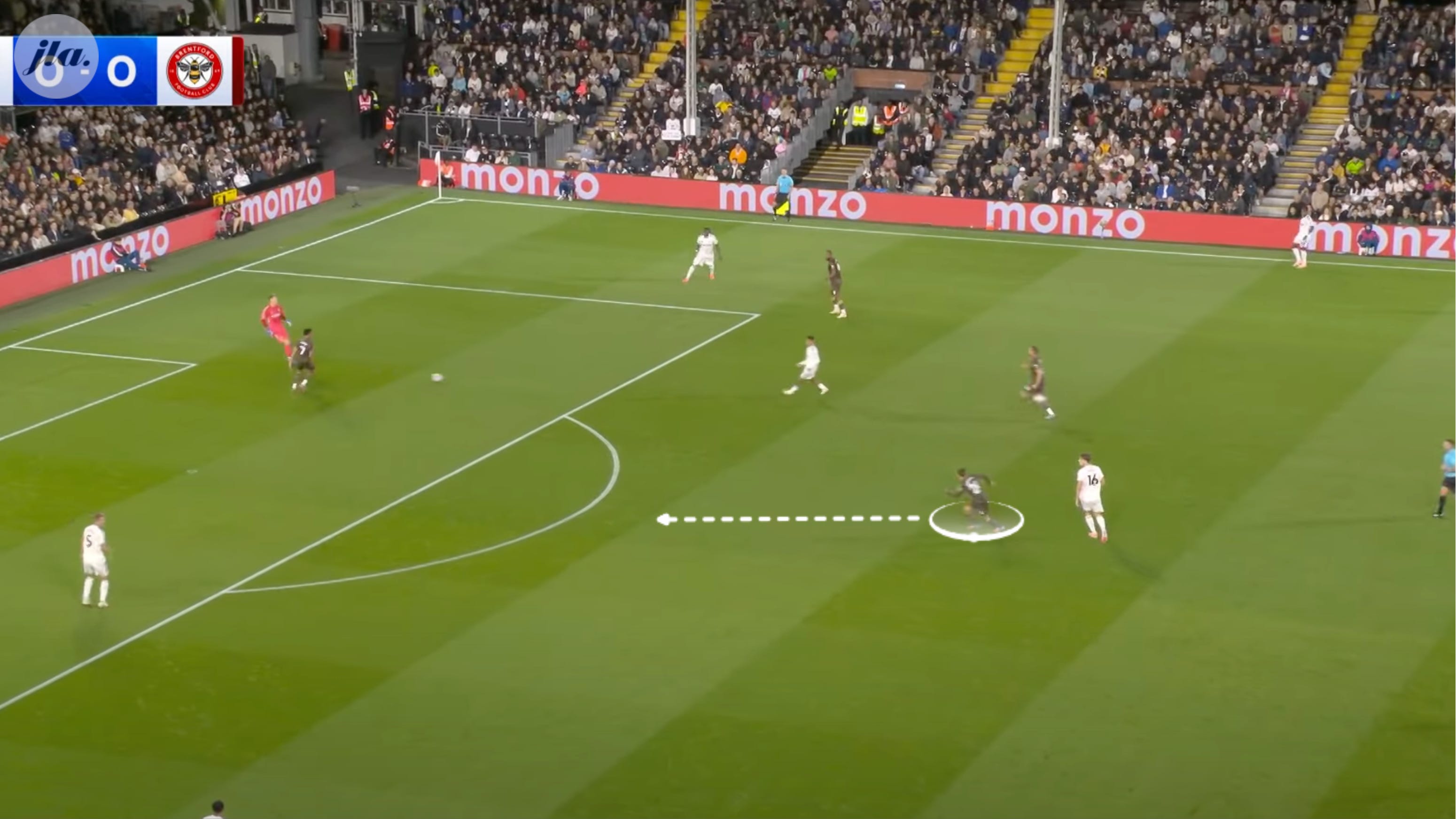 The goal came for Brentford from Fulham playing out of defence, as they pressed man for man, with Josh King coming deep to receive the ball, who looked for the more progressive option in Kenny Tete rather than the safer Joachim Andersen.